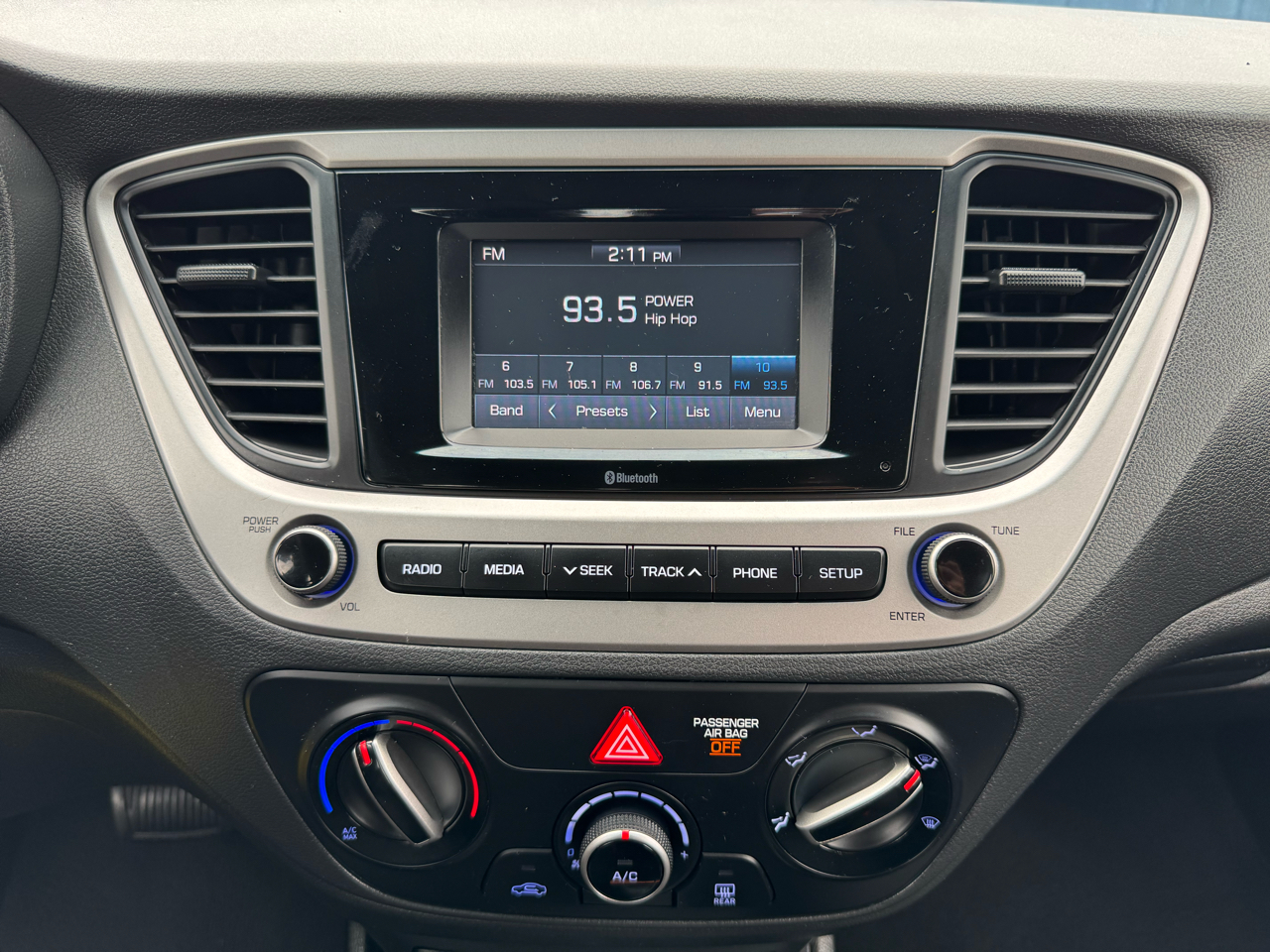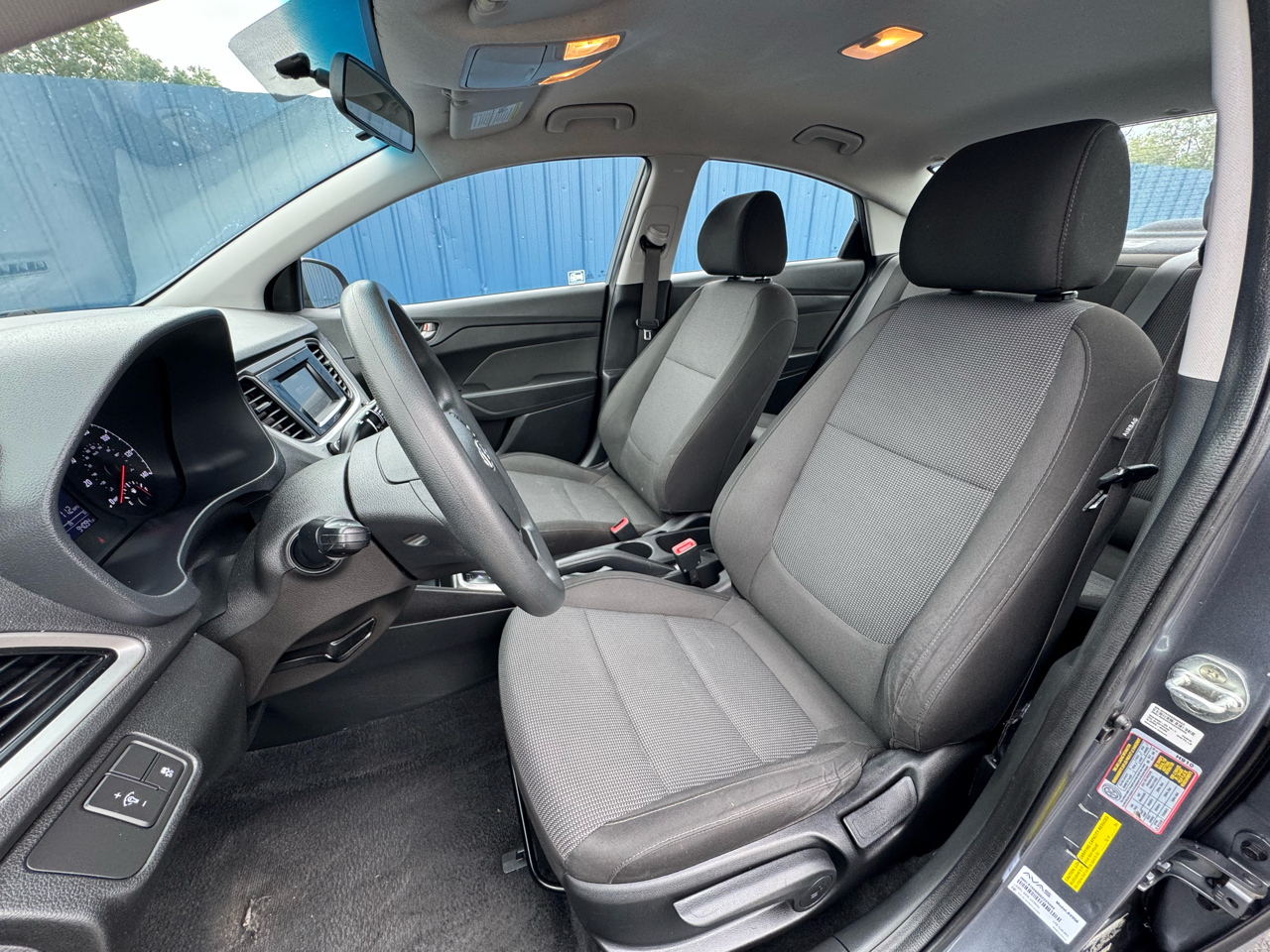 You'll be cruising in style with the 15" steel wheels, body-colored bumpers, and chrome grille that give this Accent a modern look. Step inside to find comfortable seating with adjustable driver and passenger seats, along with convenient features like air conditioning, cruise control, and a user-friendly entertainment system. Safety is a top priority, with dual front and side airbags, a backup camera, and rear child safety locks to keep you and your passengers protected.
